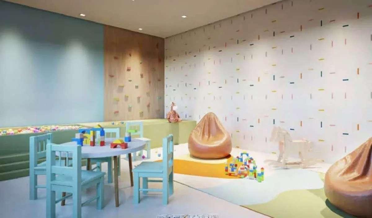 Áreas comuns equipadas e decoradas, Hall social com pé direito duplo, Quadra gramada, Vestiário masculino e feminino, Churrasqueira, Espaço gastronômico, Jardins, Piscina Infantil, Salão de festas com pé direito duplo, Espaço criança, Fitness, Piscina Adulto, Playground, Salão de jogos, Sauna com descanso.